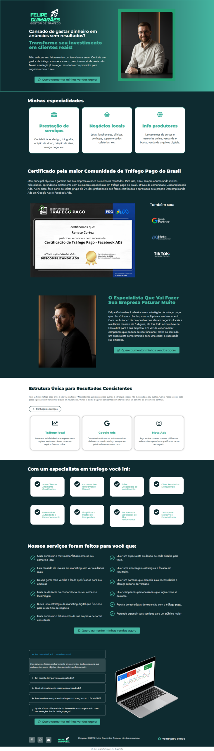 Para um profissional que trabalhava em sua cidade natal e região, criei uma estrutura clara, focada em serviços e trabalhos executados, com foco em geração de contato e construção de credibilidade.